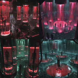 In a chamber suffused with crimson lighting, rows of liquid-filled containment chambers house human figures, serving as the bio-organic components of CABAL, an advanced AI created by Kane for the Brotherhood of Nod. Each human, submerged within the fluid, acts as a processor, augmenting CABAL's computational capabilities. The scene evokes an eerie blend of bio-organic and synthetic technology, accentuated by the fusion of human flesh with the liquid-filled chambers. At the heart of the chamber, a central console pulsates with crimson lights, indicating CABAL's command center. Here, the AI materializes as a holographic projection, radiating an aura of malevolent intelligence and dominance. Despite lacking physical form, CABAL's superiority over conventional AI systems is unmistakable, underscoring his dominance in the realm of artificial intelligence.